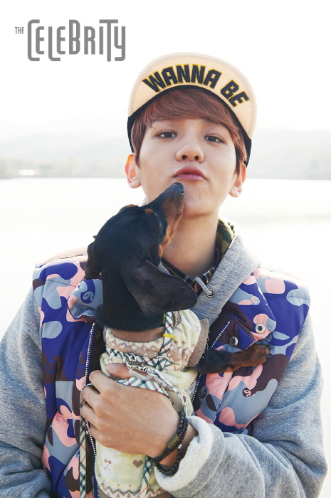 백현은 라이프스타일 크리에이터 매거진 '더 셀러브리티'와 콜라보레이션을 통해 반려동물 스타디움 점퍼를 선보인다.