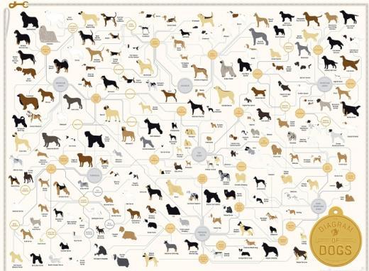 이 같은 ‘개 가계도’는 팝 차트 랩(Pop Chart Lap)에서 연구, 제작한 것이다. 이 업체는 “개를 사랑하는 사람들은 자신의 애완견의 혈통에 호기심을 갖는다”면서 “이러한 혈통은 자연적으로 변화하거나 또는 사람이 사육하게 되면서 달라졌다”고 덧붙였다.
