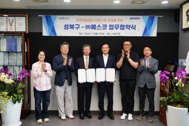 성북구(구청장 이승로)는 7월 14일 성북구청에서 ㈜예스코와 ‘지역아동센터 환경 개선 지원을 위한 사회공헌 협약’을 맺고, 민관이 함께하는 아동 돌봄 체계 구축에 본격 나섰다. 협약식에는 이승로 성북구청장과 ㈜예스코 김환 대표이사 등 관계자들이 참석해 지속 가능한 지역 아동 지원 방안에 대해 뜻을 모았다.