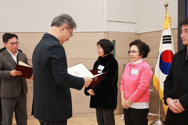 장인홍 구로구청장(왼쪽)이 2025년 하반기 모범구민 표창 수여식에서 수상자에게 표창장을 전달하고 있다.서울 구로구(구청장 장인홍)는 지난 30일 구청 5층 강당에서 ‘2025년 하반기 모범구민 표창 수여식’을 개최했다고 밝혔다. 이번 수여식은 올 한 해 각자의 자리에서 성실하게 활동하며 지역 공동체의 귀감이 된 구민들의 노고를 격려하고 감사의 뜻을 전하기 위해 마련됐다.