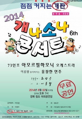 8월 2일 오후 7시 청도야외공연장에서 열릴 이번 행사는 무료이며, 73인조 아모르 필하모닉오케스트라의 연주로 반려동물을 위한 음악회 진행되며 개그맨 이홍렬의 사회를 본다.