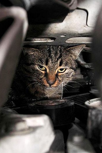 차량 보닛 밑에서 고양이를 발견한 누룰라 커맨은 고양이를 꺼내기 위해 차량 앞부분을 분해해야 했다.