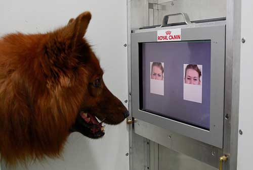 연구진은 24마리의 개를 대상으로 터치스크린에 사람의 화난 표정과 웃는 표정을 보여주고 한 그룹은 반복적으로 행복한 얼굴을 선택하도록 했고, 다른 그룹은 화가 난 얼굴을 선택하도록 했다. 그 결과 웃는 얼굴을 선택할 때에 자신도 좋다는 것을 표현하고, 그리고 화가 났을 때에는 경계를 하는 것을 발견했다.